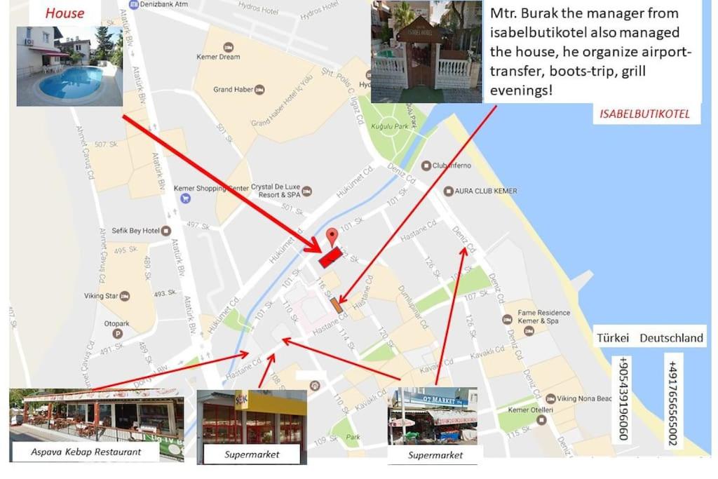 Featuring a garden, Homekemer A offers accommodations in Kemer. This beachfront property offers access to a terrace. Antalya Aquarium is 25 miles away and Antalya Aqualand is 25 miles from the villa. With free Wifi, this 3-bedroom villa features a flat-screen TV, a washing machine, and a fully equipped kitchen with a dishwasher and oven. Towels and bed linen are available in the villa. The accommodation has a fireplace. Merkez Bati Public Beach is a 4-minute walk from the villa, while 5M Migros is 24 miles from the property. Antalya Airport is 34 miles away.