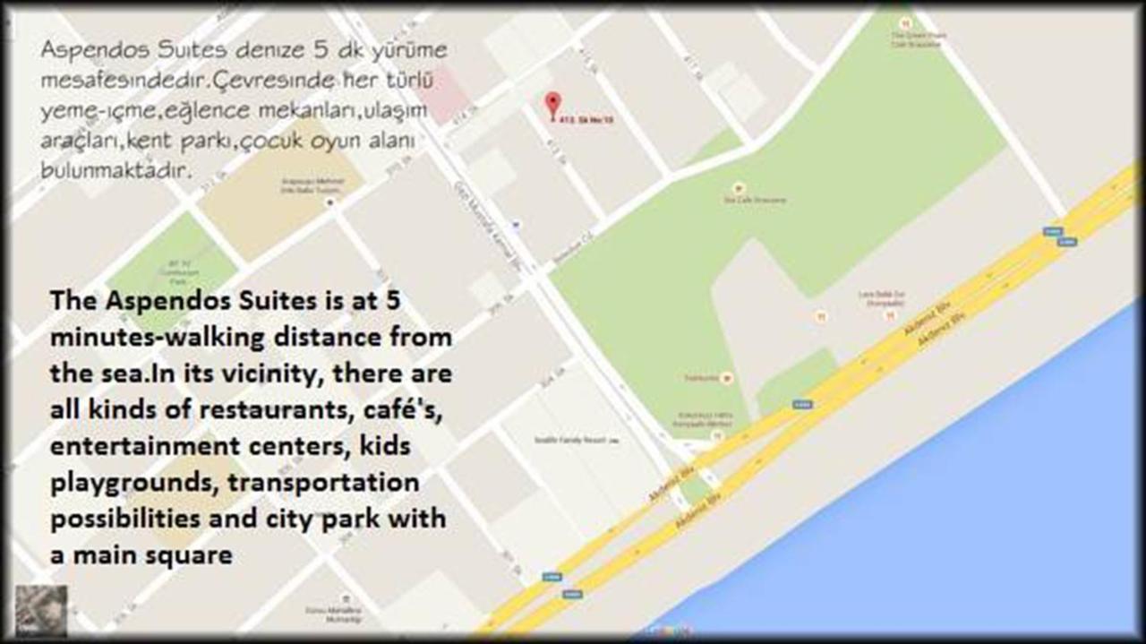 Aspendos Suites, Antalya'da Altınkum Mahallesi, 413. Sokak No:10, Konyaaltı adresinde konumlanan açık havuzlu ve deniz manzaralı bir konaklama tesisidir. Konaklama birimlerinin çoğu, deniz manzaralı balkon ya da teras sunar ve misafirler güneşin tadını çıkarırken Akdeniz’in esintisini hissedebilir. Tesis plaja yalnızca 300 metre, Antalya Akvaryumu ise 2,4 kilometre mesafesindedir; ANTALYA AQUALAND 3 km uzaklıktadır. Tesis genelinde ücretsiz Wi‑Fi mevcuttur ve açık havuz ile bahçe manzaraları eşliğinde dingin bir konaklama deneyimi sunar. Oda sayısı 20 olan tesis, 14:00 itibarıyla giriş ve 11:00’a kadar çıkış seçeneklerini sunan basit ve konforlu bir altyapıya sahiptir. Otelde İngilizce, Rusça ve Türkçe dillerinde iletişim imkanı bulunmaktadır ve odaların çoğu, deniz manzarası, klima, minibar, mutfak/mini mutfak ve oturma alanı gibi olanaklarla donatılmıştır. Daireler, geniş oturma alanları ve yemek alanları içerir; bazı fotoğraflarda tam donanımlı mutfaklar ve ayrı yaşam alanları görülmektedir. Tesiste bahçe, balkon ve güneşlenme alanları mevcuttur; açık havuz kenarında dinlenmek için ideal olan bu alanlar, denize bakan manzaralara sahip olabilir. Evcil hayvan yasağı bulunmaktadır ve tesis genelinde ücretsiz Wi‑Fi erişimi sunulmaktadır. Ayrıca tesis, çocuk sayısı ve yaşlarının arama aşamasında belirtilmesini önerir; mevcut yatak kullanılıyorsa çocuk politikaları varyasyon gösterebilir. Toplamda dört kişiye kadar misafir ağırlama kapasitesi olan bu tesiste, mevcut yataklar ve ilave yatak kullanımıyla konaklama seçenekleri değerlendirilmektedir. Aspendos Suites, sakin ve konforlu bir konaklama arayan gezginler için ideal bir seçenek olarak öne çıkmaktadır.