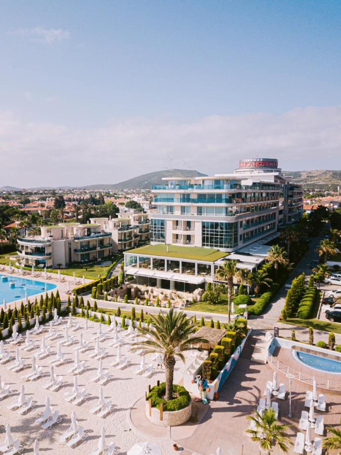 Ege kıyısında mavi bayraklı özel plaja sahip olan bu 5 yıldızlı Çeşme tatil köyü, termal suya sahip bir tane de olmak üzere 7 açık havuz ve panoramik camlara sahip bir büfe restoran sunmaktadır.